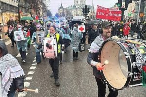 সুইডেনের রাজধানী স্টকহোমে ইসরাইলবিরোধী বিক্ষোভ করেছেন শত শত মানুষ। অধিকৃত পশ্চিম তীরকে ইসরাইলের সঙ্গে সংযুক্ত করার পরিকল্পনা এবং যুদ্ধবিরতি চুক্তি মেনে চলতে ব্যর্থ হওয়ায় তেলআবিবের