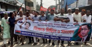 বিএনপি জামাতের হত্যা, ষড়যন্ত্র, অগ্নি সন্ত্রাস ও নৈরাজ্যের প্রতিবাদে জয়পুরহাটে শান্তি ও উন্নয়ন সমাবেশ অনুষ্ঠিত হয়েছে। সোমবার বিকেল ৫টায় জেলা আওয়ামী লীগের দলীয় কার্যালয় থেকে