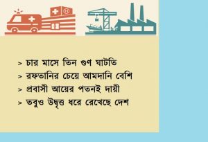 করোনার কারণে চলতি অর্থবছরের প্রথম চার মাসে (জুলাই-অক্টোবর) বাণিজ্য ঘাটতি ছাড়িয়েছে ৯০০ কোটি ডলার। বাণিজ্য ঘাটতির সঙ্গে বৈদেশিক লেনদেনের চলতি হিসাবের ঘাটতি দাঁড়িয়েছে প্রায় ৪৭৭