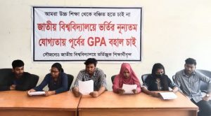 জাতীয় বিশ্ববিদ্যালয়ে ভর্তি যোগ্যতা পূর্বে যা ছিল, তাই বহাল রাখতে ও সকল পাবলিক বিশ্ববিদ্যালয়ের ভর্তি সম্পূর্ন হওয়ার পরে জাতীয় বিশ্ববিদ্যালয়ে ভর্তি কার্যক্রম শুরু করার দাবি