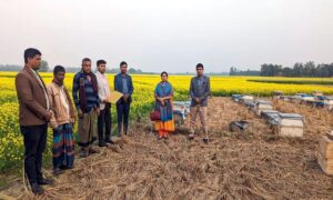 নওগাঁর রাণীনগর উপজেলার সরিষা ফুল থেকে তিনটি ইউনিয়নে চলছে মধু সংগ্রহ। তাই মধু সংগ্রহ করতে ব্যস্ত সময় পার করছেন বাহিরের মৌয়ালদের পাশাপাশি স্থানীয় কৃষকেরা। আর