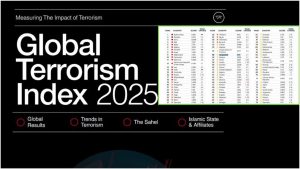 ২০২৫ সালে বাংলাদেশ বৈশ্বিক সন্ত্রাসবাদ সূচকে (জিটিআই) আগের বছরে চেয়ে তিন ধাপ এগিয়েছে। গত বছর এই সূচকে বাংলাদেশের অবস্থান ৩২তম থাকলেও চলতি বছর তা ৩৫তম।