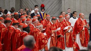 রোমান ক্যাথলিকদের ধর্মগুরু পোপ নির্বাচনের আনুষ্ঠানিকতা শুরু হয়েছে। বুধবার (৭ মে) স্থানীয় সময় সকাল ১০টায় প্রার্থনা অনুষ্ঠানের মধ্য দিয়ে ভ্যাটিকানের সেন্ট পিটার্স ব্যাসিলিকায় এই আনুষ্ঠানিকতা