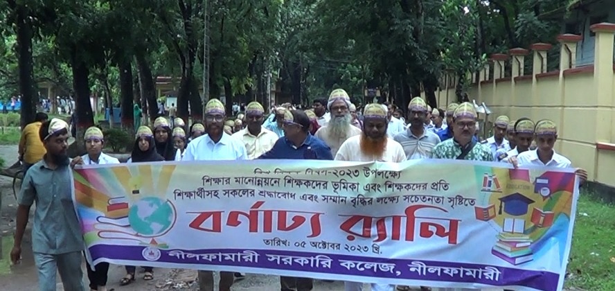 শিক্ষার মানোন্নয়নে শিক্ষকদের ভুমিকা এবং শিক্ষকদের প্রতি শিক্ষার্থীসহ সকলের শ্রদ্ধাবোধ এবং সন্মান বৃদ্ধির লক্ষ্যে সচেতনতা সৃষ্টির লক্ষে পালিত হলো বিশ্ব শিক্ষক দিবস। দিবসটি পালনে বর্নাঢ্য র্যালি ও আলোচনা সভার আয়োজন করে নীলফামারী সরকারী কলেজ।