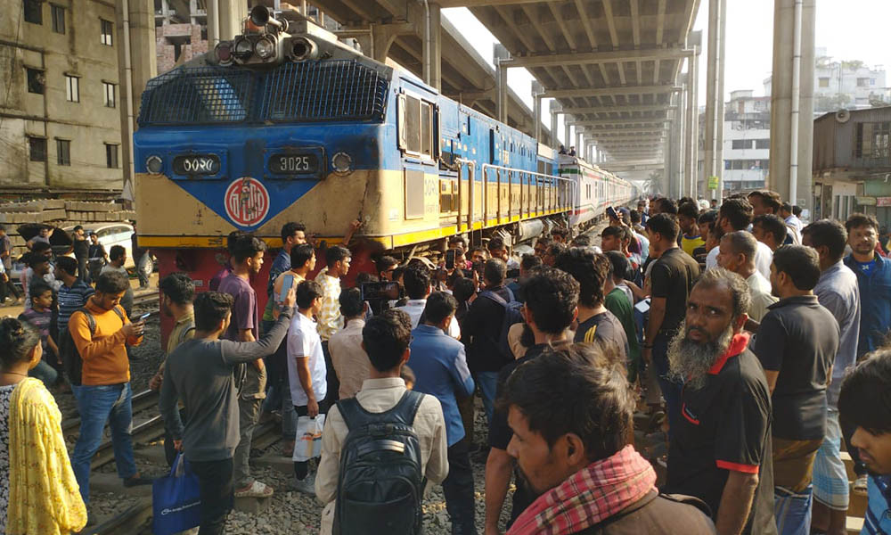এর আগে বেলা সোয়া ৩টার দিকে অর্ধশতাধিক শিক্ষার্থী তিতুমীর কলেজের সামনে থেকে মিছিল নিয়ে মহাখালীর আমতলী মোড়ের দিকে অগ্রসর হন। মিছিলকারীদের সঙ্গে থাকা অনশনকারী শিক্ষার্থীরা প্রথমে রেললাইনে শুয়ে পড়েন। পরে আন্দোলনকারীরা রেলপথ অবরোধ করেন। এ সময় কমলাপুরের দিক থেকে একটি ট্রেন আসতে দেখলে শিক্ষার্থীরা ট্রেনটি লাল নিশানা দেখিয়ে থামান।