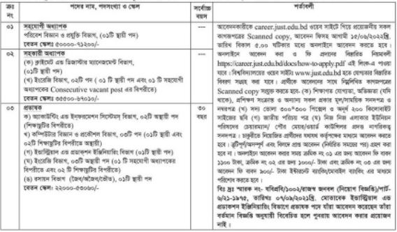 আবেদনের নিয়ম: আগ্রহীরা career. just.edu.bd এর মাধ্যমে আবেদন করতে পারবেন।