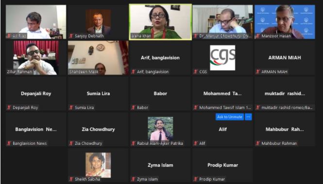সিজিএসের চেয়ারম্যান ড. মনজুর আহমেদ চৌধুরীর সভাপতিতে ও নির্বাহী পরিচালক জিল্লুর রহমান সঞ্চালনায় ওয়েবিনারে অংশ নেন সুপ্রিম কোর্টের জ্যেষ্ঠ আইনজীবী ড. শাহদীন মালিক, ব্র্যাক বিশ্ববিদ্যালয়ের সেন্টার ফর পিস অ্যান্ড স্টাডিজের নির্বাহী পরিচালক ব্যারিস্টার মনজুর হাসান, এবং বাংলাদেশ হিউম্যান রাইটস ফাউন্ডেশনের চেয়ারপার্সন ও প্রধান নির্বাহী এডভোকেট এলিনা খান।