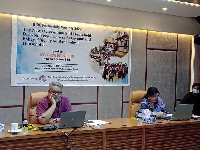 গত বুধবার বিকেলে রাজধানীর শেরেবাংলা নগরে অবস্থিত বিআইডিএসের কার্যালয়ে ‘দ্য নিউ ডিটারমিনেশন অব হাউসহোল্ড ডিজাস্টার প্রিপেয়ার্ডনেস বিহেভিয়ার অ্যান্ড পলিসি ইফিসিয়েন্সি অন বাংলাদেশী হাউসহোল্ডস’ শীর্ষক একটি অনুষ্ঠানে এসব তথ্য জানানো হয়েছে। অনুষ্ঠানে বিআইডিএস’র গবেষণাপত্রটি উপস্থাপন করেছেন সংস্থাটির রিসার্চ ফেলো আজরিন করিম।