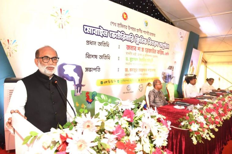 মৎস্য ও প্রাণিসম্পদ মন্ত্রী শ ম রেজাউল করিম জানিয়েছেন, দ্রুততম সময়ে খামারিদের দোরগোড়ায় জরুরি প্রাণী চিকিৎসা সেবা পৌঁছে দিতে ভ্রাম্যমাণ প্রাণী চিকিৎসা ক্লিনিক চালু করা হয়েছে।