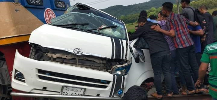 চট্টগ্রামের মিরসরাইয়ের খৈয়াছড়া ঝর্ণা এলাকায় ট্রেনের ধাক্কার পর্যটকবাহী একটি মাইক্রো দুমড়ে মুচড়ে গেছে। এই ঘটনায় মাইক্রোর ভেতর থাকা সকল পর্যটকই নিহত হয়েছেন।