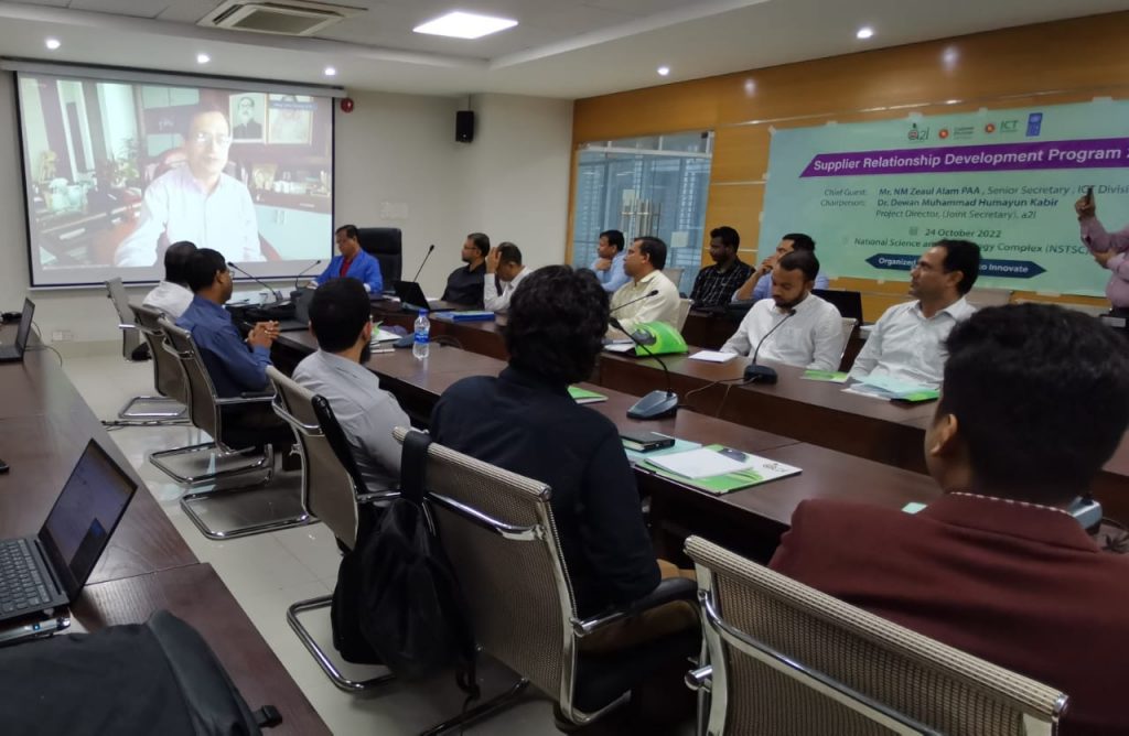 এলক্ষ্যে সোমবার (২৪ অক্টোবর) আগারগাঁওয়ের জাতীয় বিজ্ঞান ও প্রযুক্তি কমপ্লেক্সের সম্মেলন কক্ষে আয়োজিত ‘সাপ্লাইয়ার রিলেশনশীপ ডেভেলপমেন্ট প্রোগ্রাম ২০২২’ শীর্ষক অনুষ্ঠানে প্রধান অতিথি হিসেবে উপস্থিত ছিলেন তথ্য ও যোগাযোগ প্রযুক্তি (আইসিটি) বিভাগের সম্মানিত সিনিয়র সচিব জনাব এন এম জিয়াউল আলম পিএএ।