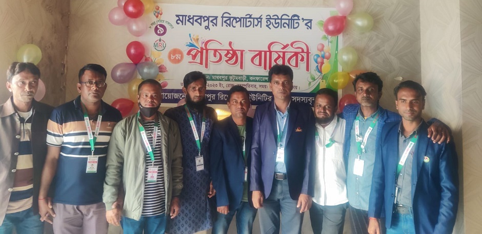 ঝমকালো আয়োজনে মাধবপুর রিপোর্টার্স ইউনিটির ৮ম প্রতিষ্ঠা বার্ষিকী উদযাপন করা হয়েছে । বৃহস্পতিবার (২৮ ডিসেম্বর) বিকাল ৪ টার সময় মাধবপুর পৌর শহরের স্বনামধন্য কুটুমবাড়ি হোটেল কনফারেন্স হল রুমে ঝমকালো আয়োজন ও কেক কাটার মধ্য দিয়ে “মাধবপুর রিপোর্টার্স ইউনিটির” ৮ম প্রতিষ্ঠা বার্ষিকী উদযাপন করা হয়েছে ।