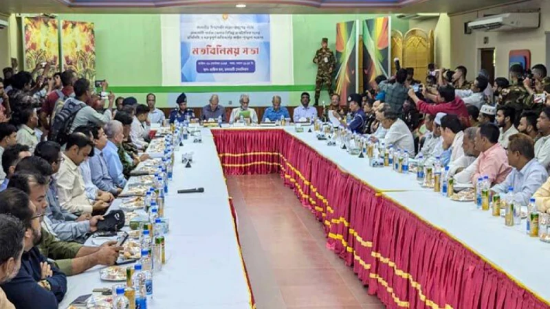 পার্বত্য চট্টগ্রামের চলমান পরিস্থিতি নিয়ে বৈঠকে বসেছেন বর্তমান সরকারের তিন উপদেষ্টা। শনিবার (২১ সেপ্টেম্বর) দুপুর ১২টার পর রাঙামাটি জেলার সেনানিবাসের প্রান্তিক হলে এ বৈঠকে বসেছেন তারা। এতে বিভিন্ন রাজনৈতিক দলের নেতৃবৃন্দ, আইনশৃঙ্খলা রক্ষাকারী বাহিনী ও প্রশাসনের ঊর্ধ্বতন কর্মকর্তা এবং বিভিন্ন জাতিগোষ্ঠীর প্রতিনিধিরা অংশ নেন।