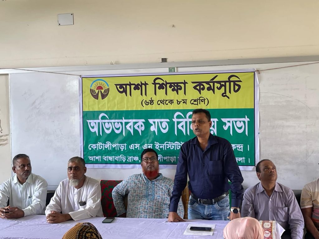 গোপালগঞ্জের কোটালিপাড়া এস এন ইনস্টিটিউশন পাঠদান কেন্দ্রে পরিচালিত শিক্ষা কার্যক্রমের অন্তর্ভুক ৬ষ্ঠ-৮ম শ্রেণি শিক্ষার্থীদের অভিভাবকদের নিয়ে ‘অভিভাবক মতবিনিময় সভা’ করেছে বেসরকারি সংস্থা আশা।