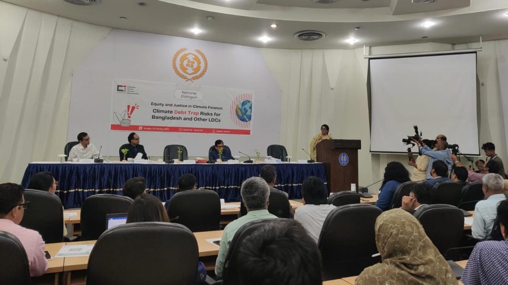 রোববার (২০ অক্টোবর) রাজধানীর সিরডাপ মিলনায়তনে চেঞ্জ ইনিশিয়েটিভ (সিআই) আয়োজিত ‘জলবায়ু অর্থায়নে ন্যায়বিচার ও সমতা : বাংলাদেশ এবং অন্যান্য এলডিসির জন্য জলবায়ু ঋণের ফাঁদের ঝুঁকি’ শীর্ষক গবেষণা প্রতিবেদন প্রকাশ অনুষ্ঠানে এ তথ্য জানানো হয়। এতে প্রধান অতিথি ছিলেন পরিবেশ, বন ও জলবায়ু পরিবর্তন মন্ত্রণালয়ের উপদেষ্টা সৈয়দা রিজওয়ানা হাসান।