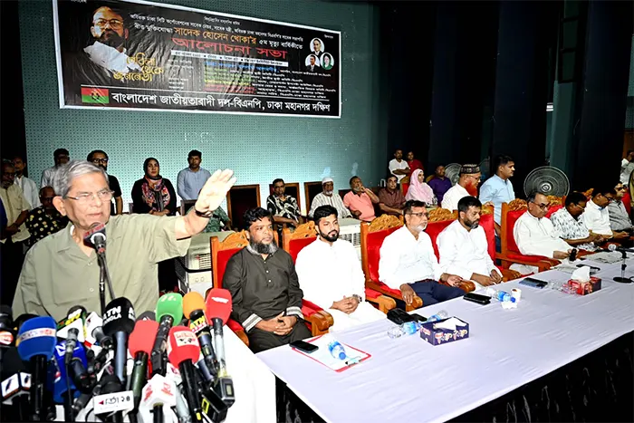 মির্জা ফখরুল বলেন, আজকে বিএনপি নয় শুধু, বাংলাদেশই সঙ্কট অতিক্রম করতে পারেনি। হাসিনা গেছেন। হাসিনা যাওয়াতে বিদেশে সবচেয়ে বেশি আনন্দ হয়েছে। আমরা ভয়াবহ একটা দানবের হাত থেকে মুক্ত হয়েছি। কিন্তু এখনো কিন্তু স্বস্তি নেই। কোথায় যেনো আটকে আছি। আটকে আছি এখানেই যে, আমাদের জনগণের সরকার এখনো প্রতিষ্ঠা হয় নাই। আছে একটা সরকার (অন্তর্বর্তী সরকার) যাকে আমরা সমর্থন দিয়েছি।