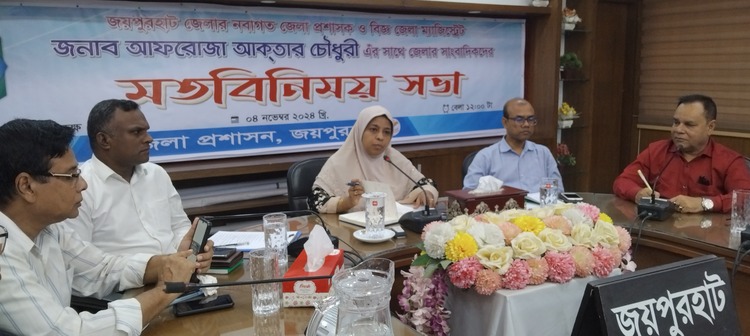 জয়পুরহাটে জেলার নবাগত প্রথম নারী জেলা প্রশাসক ও জেলা ম্যাজিস্ট্রেট আফরোজা আকতার চৌধুরীর সাথে জেলার সাংবাদিকদের পরিচিতি ও মতবিনিময় অনুষ্ঠিত হয়েছে।