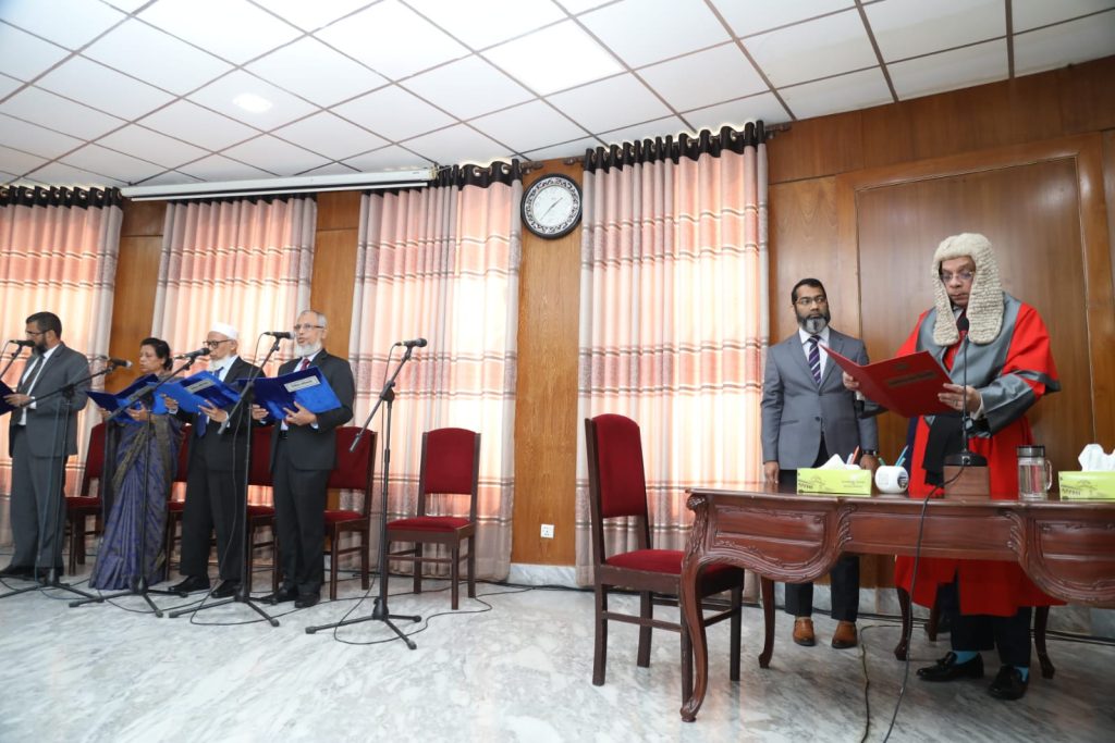 নবনিযুক্ত প্রধান নির্বাচন কমিশনার (সিইসি) এ এস এম মো. নাসির উদ্দীন ছাড়াও চার নির্বাচন কমিশনার (ইসি) আনুষ্ঠানিকভাবে শপথ নিয়েছেন। রোববার (২৪ নভেম্বর) দুপুর দেড়টার পর সুপ্রিম কোর্টের জাজেস লাউঞ্জে তাদের শপথ পাঠ করান প্রধান বিচারপতি ড. সৈয়দ রেফাত আহমেদ।