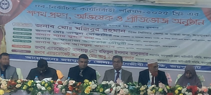 জয়পুরহাটে জেলা আইনজীবী সমিতির নব-নির্বাচিত কার্যনির্বাহী পরিষদের শপথ গ্রহণ, অভিষেক ও প্রীতিভোজ অনুষ্ঠিত হয়েছে।