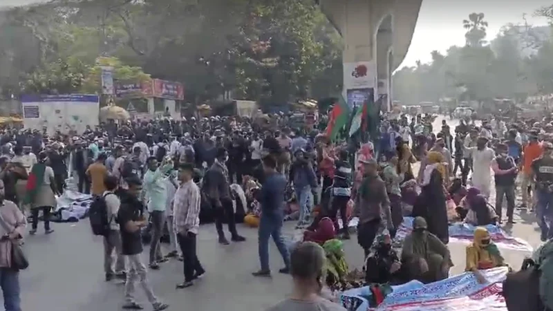 এক আন্দোলনকারী বলেন, যতক্ষণ পর্যন্ত দাবি আদায় না হবে ততক্ষণ পর্যন্ত এখান থেকে সরব না।
