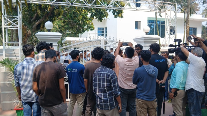 মঙ্গলবার (২৫ ফেব্রুয়ারি) দুপুরে ১৮/২০ জন শিক্ষার্থী উপাচার্যের বাসভবনে তালা দিতে গেলে শিক্ষকরা প্রতিবাদ জানায়।