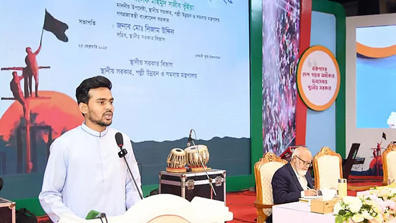 মঙ্গলবার (২৫ ফেব্রুয়ারি) ঢাকার ওসমানী স্মৃতি মিলনায়তনে স্থানীয় সরকার বিভাগ আয়োজিত ‘জাতীয় স্থানীয় সরকার দিবস-২০২৫’ উপলক্ষে এক অনুষ্ঠানে প্রধান অতিথির বক্তব্যে উপদেষ্টা আসিফ মাহমুদ এ কথা বলেন। মন্ত্রণালয়ের সংবাদ বিজ্ঞপ্তিতে এ তথ্য জানানো হয়।