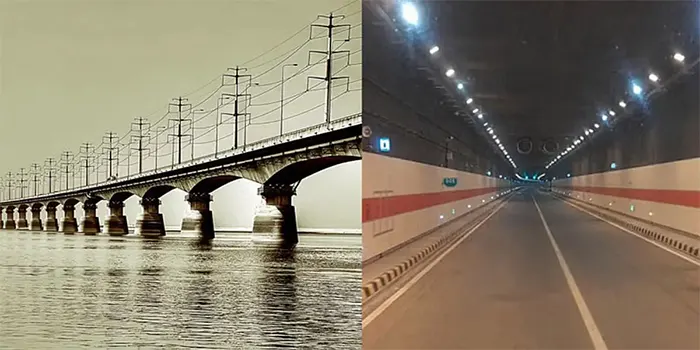 যমুনা নদীর ওপর চার দশমিক আট কিলোমিটার দীর্ঘ সেতুটি ১৯৯৮ সালের জুন মাসে এবং চট্টগ্রামে কর্ণফুলী নদীর তলদেশে দেশের প্রথম টানেল ২০২৩ সালের অক্টোবরে যান চলাচলের জন্য খুলে দেয়া হয়।