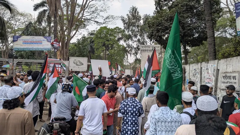 এদিন সকাল থেকেই মিছিলে মিছিলে স্লোগান নিয়ে বিভিন্ন শ্রেণী পেশার মানুষকে গণজমায়েত স্থলে এসে জড়ো হতে দেখা যায়। তাদের অনেকেই ফিলিস্তিনের পতাকা, মাফলার, টি-শার্ট, মাথার ব্যান্ড সহ বিভিন্ন প্ল্যাকার্ড হাতে এখানে এসে জড়ো হতে দেখা যায়।