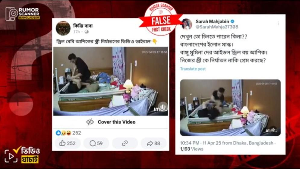 সম্প্রতি সামাজিক যোগাযোগ মাধ্যমে একজন নারীকে একজন পুরুষের মারধর করার একটি ভিডিও প্রচার করে ক্যাপশনে লেখা হয়েছে, “দেখুন তো চিনতে পারেন কিনা?? বাংলাদেশের ইলোন মাস্ক। বাঙ্গু মুমিনাদের আইডল ড্রিল বয় আশিক। নিজের স্ত্রীকে নির্যাতন নাকি প্রেম করছে”। এছাড়াও, একই ভিডিও প্রচার করে কিছু পোস্টের ক্যাপশনে লেখা হয়েছে, “ড্রিল বেবি আশিকের স্ত্রী নির্যাতনের ভিডিও ভাইরাল!”