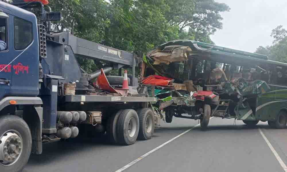 পুলিশ ও প্রত্যক্ষদর্শীদের সূত্র জানায়, গতকাল শনিবার রাত আটটার দিকে খুলনার উদ্দেশে ঢাকার যাত্রাবাড়ী থেকে বলেশ্বর পরিবহনের একটি বাস যাত্রী নিয়ে রওনা দেয়। ভোর চারটার দিকে মহাসড়কের পাশে দাঁড়িয়ে থাকা একটি ট্রাককে পেছন থেকে ধাক্কা দেয় বাসটি। এ সময় একই দিক থেকে আসা আরমান পরিবহন ও এসপি গ্রিনলাইনের বাস এবং একটি প্রাইভেট কার দুর্ঘটনায় জড়িয়ে পড়ে।