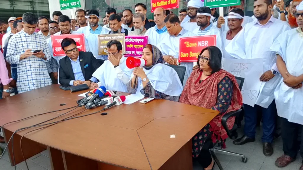 সোমবার (২৩ তারিখ) রাজস্ব ভবন প্রাঙ্গণে অনুষ্ঠিত সংবাদ সম্মেলনে এ ঘোষণা দেন এনবিআর সংস্কার ঐক্য পরিষদ।