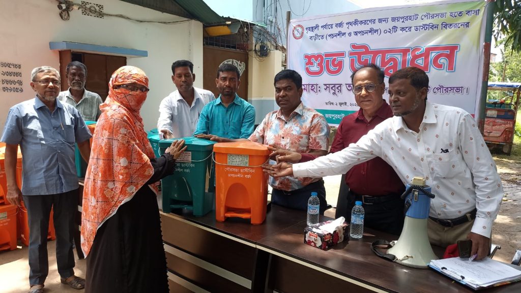 জয়পুরহাট পৌরসভায় গৃহস্থালী পর্যায়ে বাসাবাড়িতে বর্জ্যপৃথকীকরণে প্রতি বাড়িতে ২টি করে ডাস্টবিন বিতরণ করা হয়।