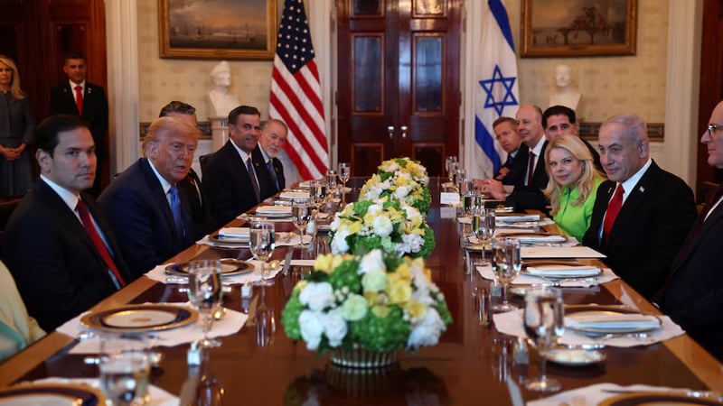এর আগে নৈশভোজের আগে সাংবাদিকদের কাছে মার্কিন প্রেসিডেন্ট ডোনাল্ড ট্রাম্পের উদ্বোধনী বক্তব্যের পর, নেতানিয়াহু ট্রাম্পের নেতৃত্বের প্রশংসা করে বলেন, এটি ইসরায়েলি, ইহুদি জনগণ এবং বিশ্বব্যাপী আরও অনেকের দ্বারা প্রশংসিত।