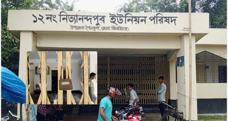 ঝিনাইদহের শৈলকুপা উপজেলার ১২ নং নিত্যানন্দনপুর ইউনিয়ন পরিষদে তালা ঝুলিয়ে সেবা কার্যক্রম বন্ধ করে দেওয়ার অভিযােগ উঠেছে স্থানীয় বিএনপি নেতার বিরুদ্ধে। ঘটনার সঙ্গে জড়িত থাকার অভিযােগে বিএনপি নেতা মহিদুল ইসলামসহ ৬ জনকে আটক করেছে আইনশৃখঙ্খলা বাহিনী।