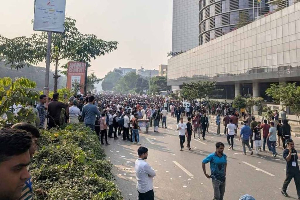 রোববার (৭ ডিসেম্বর) সকাল সাড়ে ১১টার পর থেকে সেখানে সড়ক অবরোধ শুরু করেন ব্যবসায়ীরা। এসময় তারা প্রধান উপদেষ্টার ডাক, টেলিযোগাযোগ ও তথ্যপ্রযুক্তি বিষয়ক বিশেষ সহকারী ফয়েজ আহমদ তৈয়্যবের পদত্যাগ দাবি করেন।