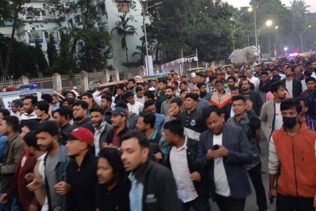 শুক্রবার (১২ ডিসেম্বর) সন্ধ্যায় ঢাকা বিশ্ববিদ্যালয় ক্যাম্পাসে বিক্ষোভ মিছিল করেন ছাত্রদলের নেতা-কর্মীরা।