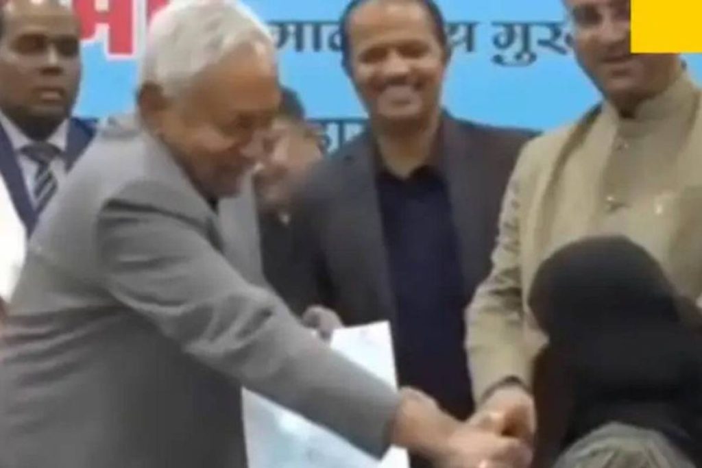 ভারতের বিহার রাজ্যের মুখ্যমন্ত্রী নিতিশ কুমার সোমবার (১৫ ডিসেম্বর) সরকারি এক অনুষ্ঠানে এক মুসলিম নারীর হিজাব টান দিয়ে খুলে দেওয়ার কারণে তীব্র সমালোচনার মুখে পড়েছেন। ঘটনাটি পাটনার একটি সরকারি অনুষ্ঠানে ঘটে, যেখানে মুখ্যমন্ত্রী এক আয়ুষ চিকিৎসককে নিয়োগপত্র প্রদান করছিলেন। ভিডিওতে দেখা যায়, ৭৪ বছর বয়সী নীতিশ কুমার ওই নারীর হিজাব সরানোর জন্য ইশারা করেন এবং নারী চিকিৎসক কিছু বোঝার আগেই নিজেই তার হিজাব তুলে দেন, যাতে মুখ ও থুতনি প্রকাশ্যে আসে।