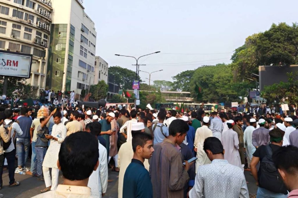 শুক্রবার (১৯ ডিসেম্বর) সকাল সাড়ে ৮টার দিকে রাজধানীর বিভিন্ন এলাকা থেকে ছাত্র-জনতার শাহবাগে জড়ো হওয়ার দৃশ্য দেখা যায়। বিক্ষোভকারীরা “ফ্যাসিবাদের কালো হাত ভেঙে দাও গুঁড়িয়ে দাও”, “আওয়ামী লীগের আস্তানা এই বাংলায় হবে না”, “হাদি ভাইয়ের রক্ত বৃথা যেতে দেব না”—এমন নানা স্লোগান দেন।