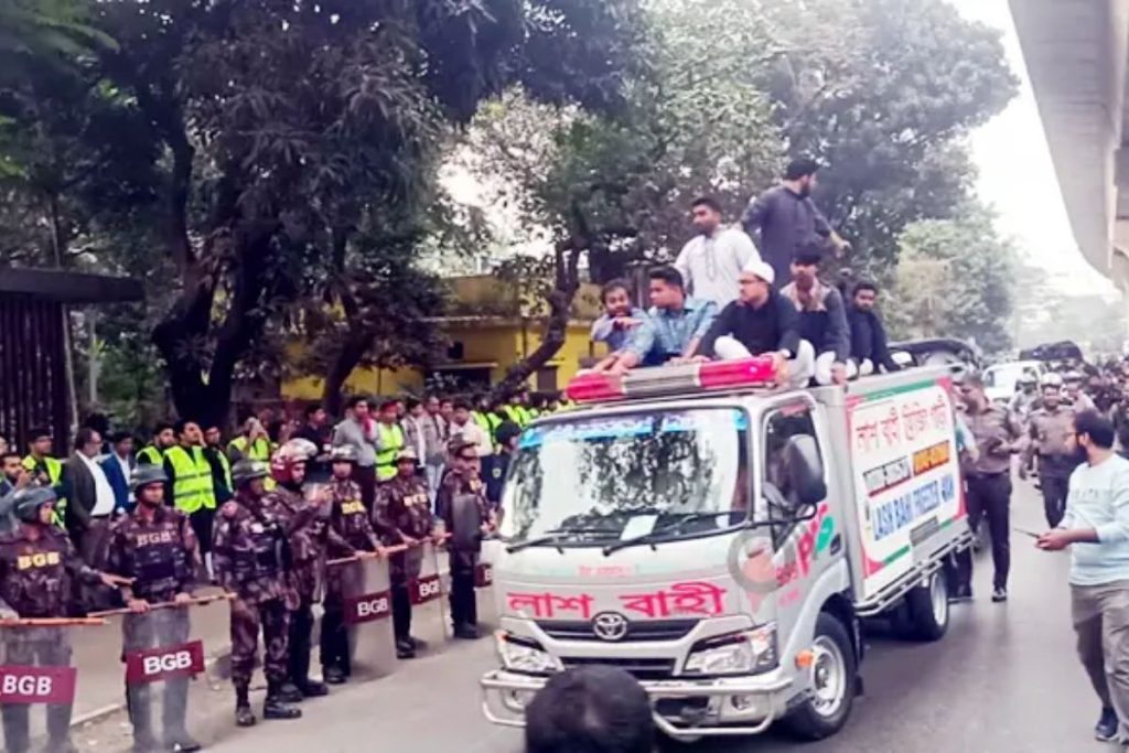ইনকিলাব মঞ্চের মুখপাত্র শহীদ শরিফ ওসমান হাদির মরদেহ ঢাকার বিশ্ববিদ্যালয় কেন্দ্রীয় মসজিদ সংলগ্ন কবরস্থানে পৌঁছেছে।