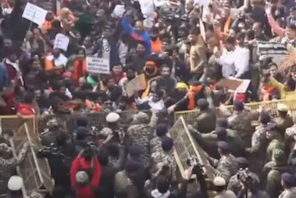 মঙ্গলবার (২৩ ডিসেম্বর) বেলা গড়ানোর সঙ্গে সঙ্গে শতাধিক বিক্ষোভকারী হাইকমিশনের সামনে জড়ো হয়। একপর্যায়ে তারা পুলিশের স্থাপন করা ব্যারিকেড ভেঙে ভেতরে প্রবেশের চেষ্টা করলে পুলিশ লাঠিচার্জ করে তাদের ছত্রভঙ্গ করে দেয়। ভারতীয় সংবাদমাধ্যম এনডিটিভি জানিয়েছে, ব্যারিকেড ভাঙার ঘটনাকে কেন্দ্র করে পরিস্থিতি এখনও সংবেদনশীল রয়েছে, যদিও নিরাপত্তা বাহিনী পরিস্থিতি নিয়ন্ত্রণে রাখতে সক্রিয় রয়েছে।