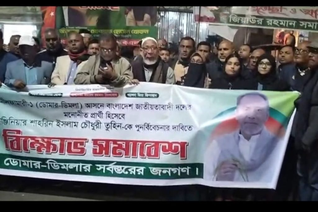 বৃহস্পতিবার (২৫ ডিসেম্বর) বিএনপির কেন্দ্রীয় কার্যালয়ের সামনে ‘ডোমার-ডিমলার সর্বস্তরের জনগণ’-এর ব্যানারে এই সমাবেশ অনুষ্ঠিত হয়।