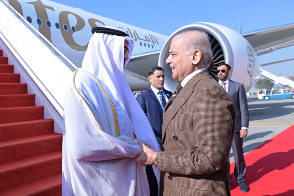 সংযুক্ত আরব আমিরাতের (ইউএই) প্রেসিডেন্ট ও আবুধাবির শাসক শেখ মোহাম্মদ বিন জায়েদ আল নাহিয়ান শুক্রবার (২৬ ডিসেম্বর) পাকিস্তানের রাজধানী ইসলামাবাদে পৌঁছেছেন। প্রধানমন্ত্রী শেহবাজ শরিফের আমন্ত্রণে নূর খান বিমানঘাঁটিতে অনুষ্ঠিত অনুষ্ঠানিক স্বাগত সমাবেশে লাল গালিচা বিছিয়ে তাঁকে অভিনন্দন জানানো হয়।