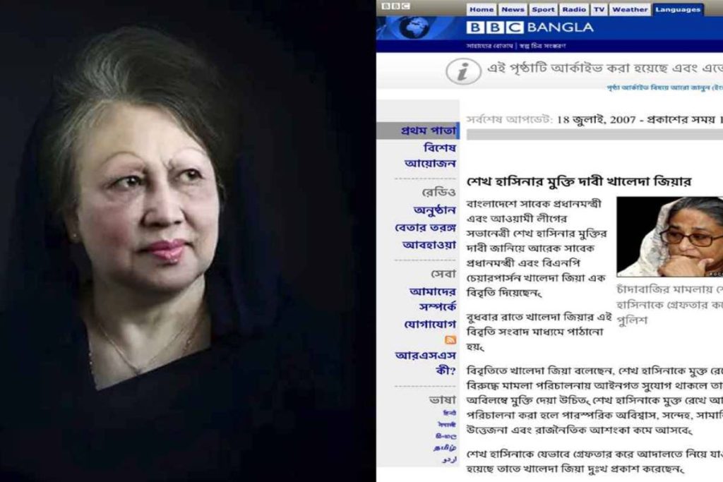 ১৮ বছর আগে এক-এগারো সরকারের সময়, সাবেক প্রধানমন্ত্রী শেখ হাসিনা যখন দুর্নীতির একাধিক মামলায় কারাবন্দি ছিলেন, তখন বিএনপি চেয়ারপারসন ও সাবেক প্রধানমন্ত্রী খালেদা জিয়া তাঁর মুক্তির আহ্বান জানিয়েছিলেন। তিনি গ্রেফতারির পদ্ধতি নিয়ে দুঃখ প্রকাশও করেছিলেন। ২০০৭ সালের ১৮ জুলাই বিবিসি বাংলায় প্রকাশিত প্রতিবেদনে বলা হয়েছিল, খালেদা জিয়া শেখ হাসিনাকে মুক্তি দিয়ে আইন অনুযায়ী মামলা পরিচালনার আহ্বান জানিয়েছেন। তিনি বিশ্বাস ও রাজনৈতিক উত্তেজনা কমাতে এ ধরনের পদক্ষেপের প্রয়োজনীয়তা উল্লেখ করেছিলেন।