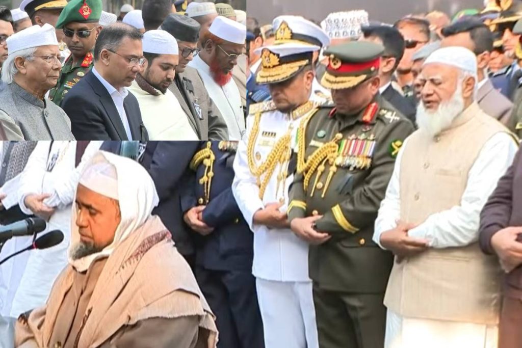 বিএনপি চেয়ারপারসনসাবেক প্রধানমন্ত্রী বেগম খালেদা জিয়ার জানাজার আগে তার ছেলে এবং দলের ভারপ্রাপ্ত চেয়ারম্যান তারেক রহমান দেশের মুসল্লিসাধারণ জনগণের কাছে দোয়া চেয়েছেনজানাজা বুধবার (৩১ ডিসেম্বর) বিকাল ৩টায় রাজধানীর জাতীয় সংসদ ভবনের দক্ষিণ পাশে মানিক মিয়া অ্যাভিনিউতে অনুষ্ঠিত হয়।