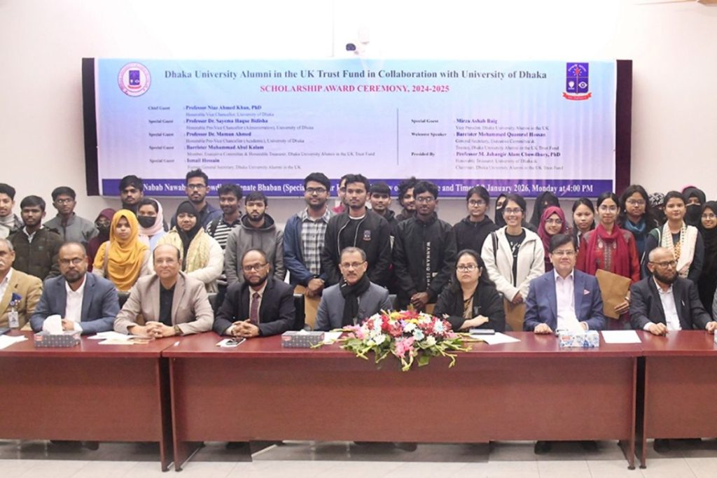 আজ সোমবার বিশ্ববিদ্যালয়ের নবাব নওয়াব আলী চৌধুরী সিনেট ভবন কনফারেন্স রুমে আয়োজিত এই বৃত্তি প্রদান অনুষ্ঠানে ঢাকা বিশ্ববিদ্যালয়ের উপাচার্য অধ্যাপক ড. নিয়াজ আহমদ খান প্রধান অতিথি হিসেবে উপস্থিত ছিলেন।