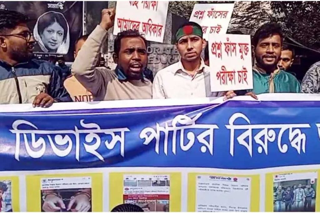 প্রশ্ন ফাঁসসহ নানা অভিযোগ এনে সরকারি প্রাথমিক বিদ্যালয়ের সহকারী শিক্ষক নিয়োগ পরীক্ষা বাতিলের দাবিতে বিক্ষোভ-সমাবেশ করেছেন পরীক্ষার্থীরা। একই সঙ্গে তারা পাঁচ দফা দাবি তুলে ধরেছেন। দাবি না আদায় হওয়া পর্যন্ত আন্দোলন চালিয়ে যাওয়া ঘোষণা দিয়েছেন তারা।