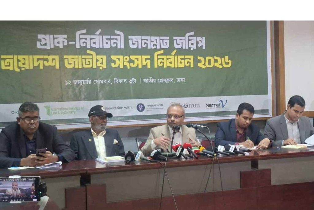 আসন্ন জাতীয় সংসদ নির্বাচনে ভোটারদের সমর্থনের ধরণ তুলে ধরেছে ইন্টারন্যাশনাল ইনস্টিটিউট অব ল অ্যান্ড ডিপ্লোম্যাসি (আইআইএলডি) পরিচালিত প্রাক-নির্বাচনী জনমত জরিপ। জাতীয় প্রেসক্লাবে সোমবার অনুষ্ঠিত সংবাদ সম্মেলনে জরিপের ফলাফল প্রকাশ করা হয়। এতে দেখা গেছে, ভোটারদের মধ্যে ৩৪.৭ শতাংশ বিএনপিকে এবং ৩৩.৬ শতাংশ বাংলাদেশ জামায়াতে ইসলামীকে ভোট দেবেন। এছাড়া ১৭ শতাংশ ভোটার এখনও সিদ্ধান্তহীন। ন্যাশনাল সিটিজেন্স পার্টি (এনসিপি) ৭.১ শতাংশ ভোট পেয়েছে, ইসলামি আন্দোলন বাংলাদেশ ৩.১ শতাংশ এবং অন্যান্য দলকে ৪.৫ শতাংশ ভোটার সমর্থন করছেন।