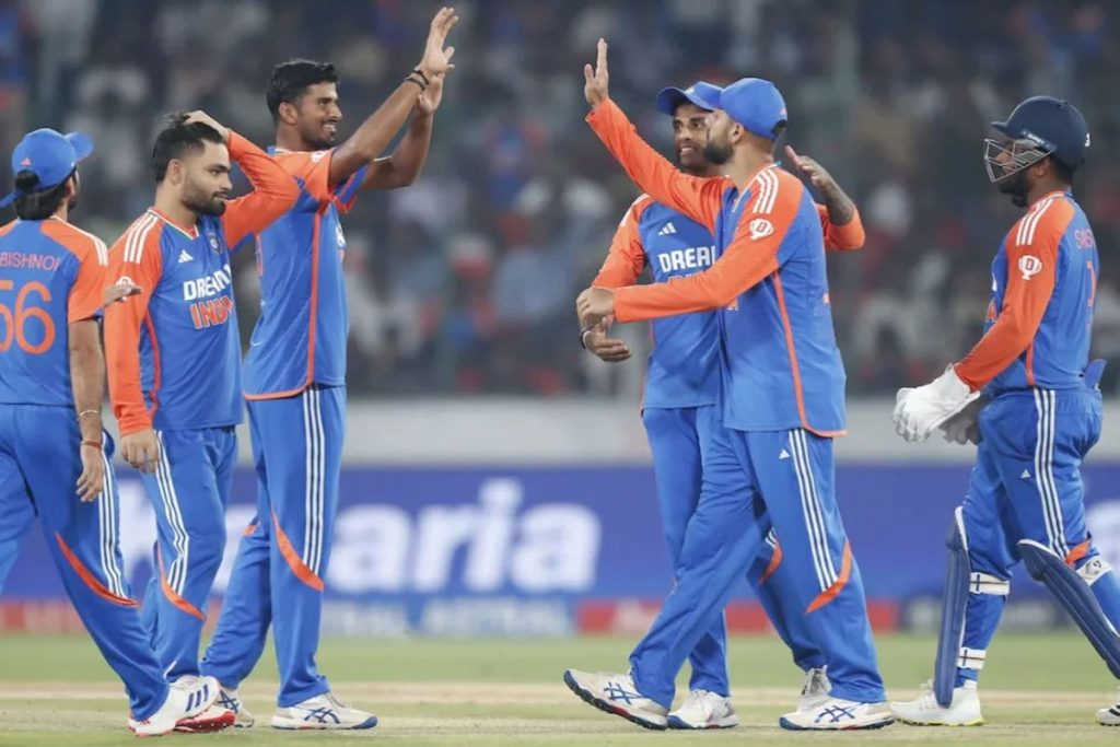 সূর্যকুমার যাদব (অধিনায়ক), অভিষেক শর্মা, সঞ্জু স্যামসন (উইকেটরক্ষক), শ্রেয়াস আইয়ার (প্রথম তিন ম্যাচ), হার্দিক পান্ডিয়া, শিভম দুবে, অক্ষর প্যাটেল (সহ-অধিনায়ক), রিংকু সিং, জাসপ্রিত বুমরাহ, হর্ষিত রানা, আর্শদীপ সিং, কুলদীপ যাদব, বরুণ চক্রবর্তী, ঈশান কিষাণ (উইকেটরক্ষক), রবি বিষ্ণই