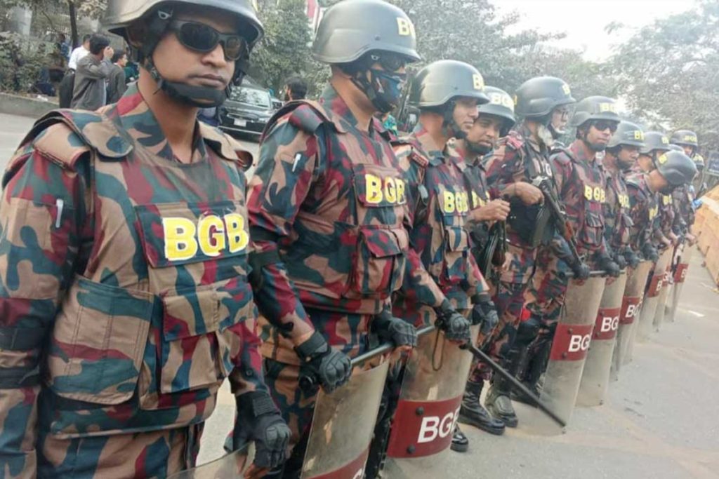 বিজিবি জানায়, আইনশৃঙ্খলা পরিস্থিতি স্বাভাবিক রাখতে রাজধানীর আগারগাঁওয়ে নির্বাচন কমিশন ভবনের সামনে বিজিবি মোতায়ন করা হয়েছে।