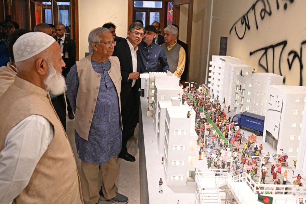 অন্তর্বর্তী সরকারের প্রধান উপদেষ্টা ড. মুহাম্মদ ইউনূস বলেছেন, ক্ষমতাচ্যুত শেখ হাসিনার বাসভবন গণভবনে জুলাই গণঅভ্যুত্থানের নানা স্মৃতি সংরক্ষণের জন্য যে জাদুঘর নির্মিত হয়েছে, সেটি গোটা পৃথিবীর কাছে এক নজিরবিহীন দৃষ্টান্ত হবে।